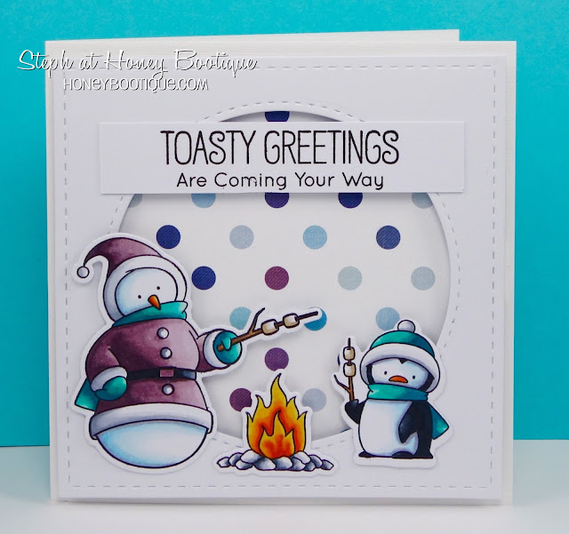 So I made a couple of MFT cards using Toasty Greetings using my fav sketch of the moment! I simply stamped out and die-cut some of the cute images and coloured with copics. I die-cut an aperture and put some Echo Park paper behind. Layered up the images and a sentiment using 3d foam pads and tape (depending on whether they were over the aperture or not!) Finally added some sequins.